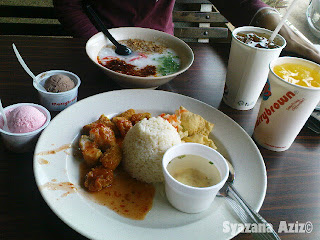 Nak melepaskan rindu lah katakan. Memang rindu sangat-sangat kat beliau sebab sejak raya hari tu takde peluang nak jumpa. Masing-masing sebok. Saya kat Machang, study and dia kat Putrajaya kerja. Nahhh! Bila kau nak kerja pulak Nana? Lambat lagi. Belajar pun belum habis. Tapi sangat seronok waktu belajar sebenarnya. Hanya stress masa nak final je. I am very close to her since we were in college. We study in the same course, we live in the same house at Muar, we were having fun together, and also share the sadness together. She is really a good friend of mine. Oke cerita pasal keberjalanan kami tadi. First thing, we went to the bus station. Hah buat apa? Beli bus lah. Apeda, takkan beli tiket pulak *sigh* ! Beli bus untuk my friend tu pulang ke Putrajaya. Isnin dah kerja doh.. Aku je berjimba lagi. Ngeh3. Ok then lepas beli bus tu weols merayap kat Billion pulak beli hadiah pengantin baru untuk kawan my friend tu. Bila dah pusing-pusing, maka perut pulak berkeroncong lagu 'Laukku cukup masin'. Mula-mula tu wat dunno je dengan lagu tu dalam perot tapi lama-lama lagu tu semakin berkumandang dengan jayanya. So saya telah fed up dan kami pun pegi lah cari 'penyanyi' untuk lagu tu kat Marrybrown. Lets go with the 'ice breaking' session with those 'singer'.